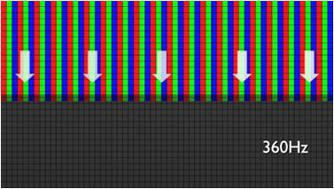 传统液晶驱动是从左到右单向进行,在画面更新速度愈来越愈快的情况下,位于驱动线路末端的右下角区域,画素的闸极来不及在短时间内获得足够电压,无法显示出正确的颜色资讯。
